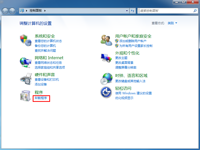 2. 点击”卸载程序”