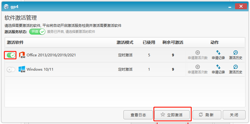 3) 点击左边的选项按钮,勾选需要激活的产品,然后点击“立即激活”