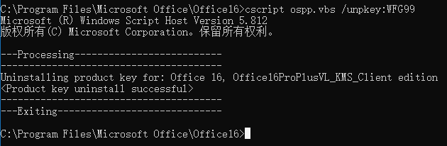 64位系统office输入命令: cd    C:\Program Files\Microsoft Office\Office16