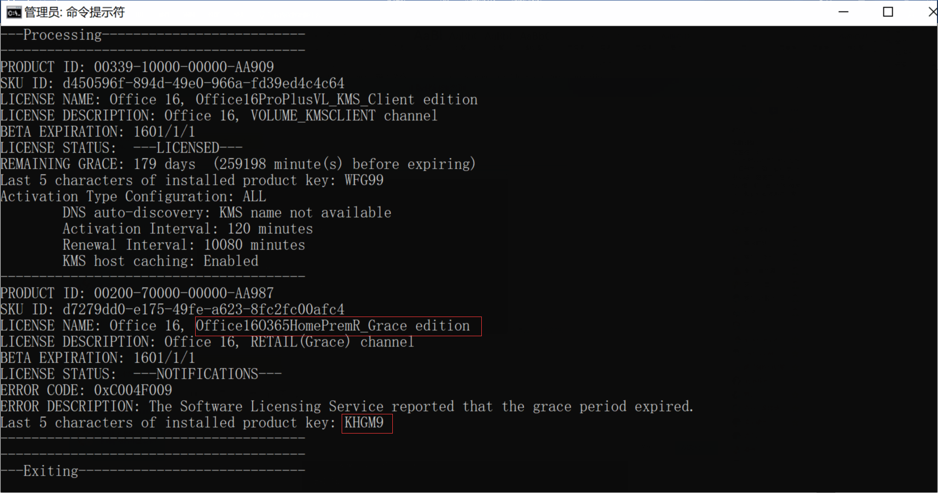 成功进入到该目录下输入命令: cscript ospp.vbs /dstatus 如下图所示