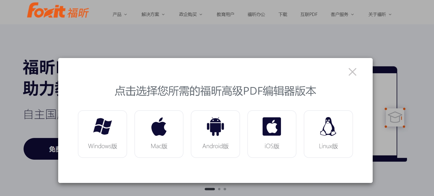 找到下图轮播图,点击免费下载PDF编辑器”,选择所需版本进行下载(含Windows、Mac、iOS、Android、Linux版本)