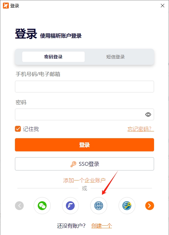 ③在登录界面中,选择“CARSI”登录;