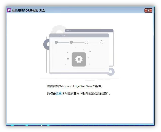 当您在点击“登录”后出现空白或以下截图中的情况,请点击截图中的“这里”访问微软官方网站下载和安装所需的组件。如果无法下载,请访问链:https://support.foxitsoftware.cn/?p=304