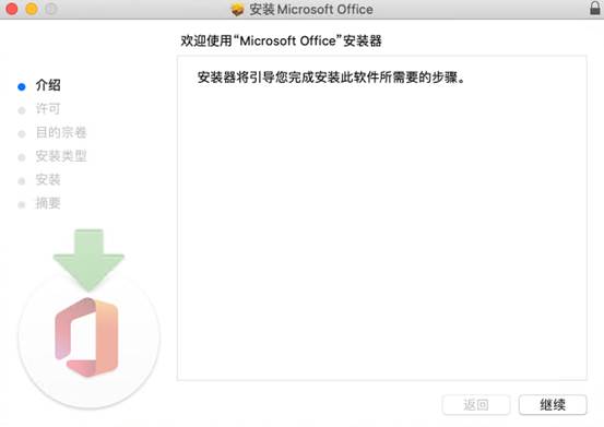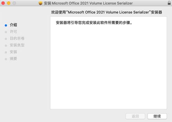 2.在第一个安装屏幕上,选择“继续”以开始安装过程。